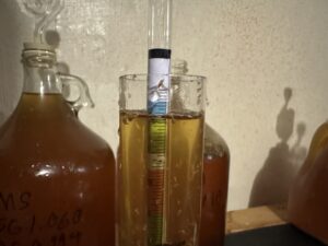 - Move to were you eye is at the level of the top of the cider to read the numbers on the hydrometer.